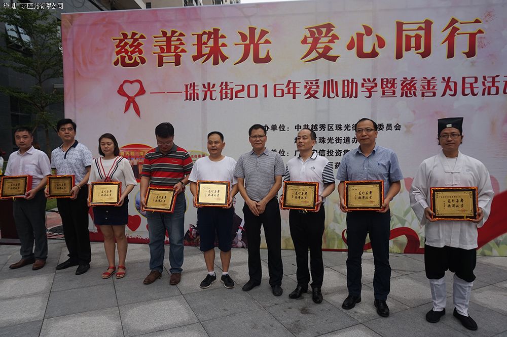 2016年8月23日,由中共越秀區(qū)珠光街工作委員會(huì)、越秀區(qū)珠光街辦事處主辦,華潤廣東醫(yī)藥有限公司、廣東安信投資集團(tuán)有限公司協(xié)辦的《慈善珠光 愛心同行——珠光街2016年愛心助學(xué)暨慈善為民活動(dòng)》,在越秀區(qū)仰忠廣場舉行。華潤廣東醫(yī)藥有限公司黃揚(yáng)文高級(jí)副總經(jīng)理出席了本次活動(dòng),并代表公司將陳威廉副董事長提供的愛心助學(xué)基金贈(zèng)與珠光街慈善基金,該基金將為珠江街近30位低收入、低保等困難家庭的大中專學(xué)生提供學(xué)業(yè)資助。