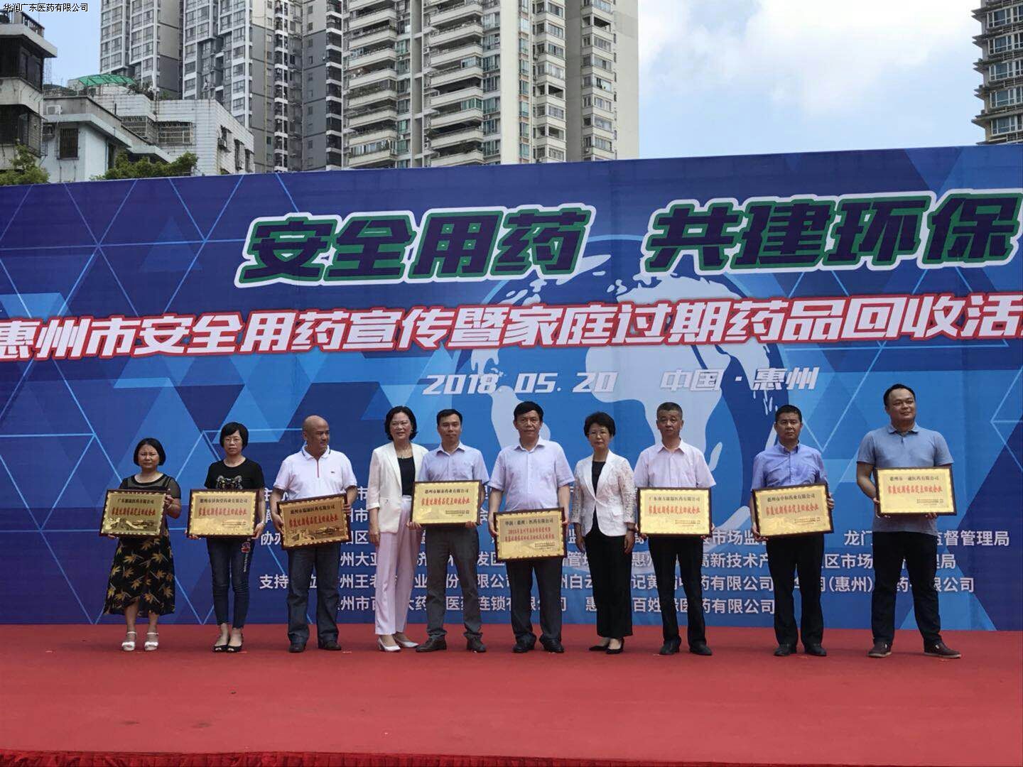 2018年5月20日,惠州市食藥監(jiān)在惠州市濱江公園舉辦了惠州市安全用藥宣傳暨家庭過期藥品回收啟動(dòng)儀式活動(dòng)。華潤惠州醫(yī)藥積極響應(yīng)此次活動(dòng),被惠州市食品藥品監(jiān)督管理局、惠州市藥品流通行業(yè)協(xié)會(huì)確定為惠州市家庭過期藥品定點(diǎn)回收企業(yè),同時(shí)被授予“2018年惠州市安全用藥宣傳暨家庭過期藥品回收啟動(dòng)儀式支持單位”。項(xiàng)目啟動(dòng)后,我司將結(jié)合GSP管理規(guī)范和集團(tuán)EHS管理要求,持續(xù)開展并做好過期藥品定點(diǎn)回收工作,積極履行我司作為央企及社會(huì)公民企業(yè)的社會(huì)責(zé)任,為保障群眾用藥安全、保護(hù)惠州市的青山綠水而不懈努力。