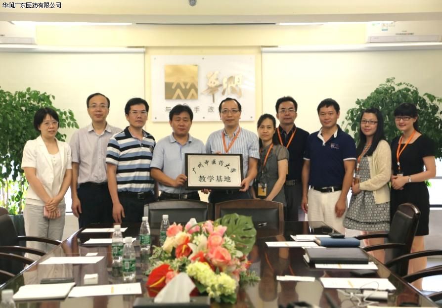 2015年6月17日上午,華潤廣東醫(yī)藥有限公司與廣州中醫(yī)藥大學(xué)共建教學(xué)基地簽約授牌儀式在華潤廣東醫(yī)藥有限公司大會議室舉行。廣州中醫(yī)藥大學(xué)學(xué)生處處長葉清、教務(wù)處副處長曾元兒及華潤廣東醫(yī)藥高級副總經(jīng)理黃揚文、副總經(jīng)理楊曉敏等10人出席了當天的儀式。