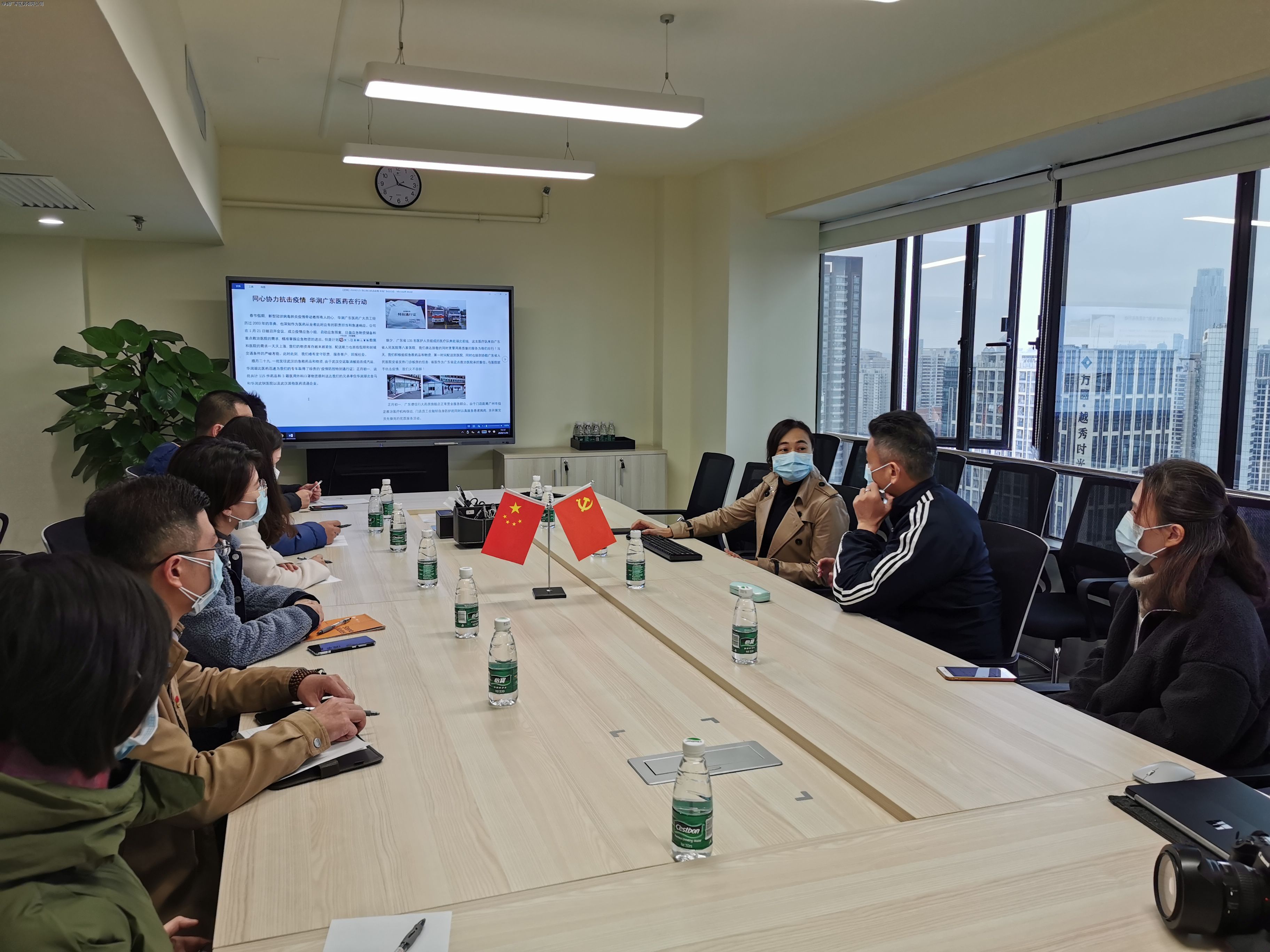 霍總向韓總匯報了華潤廣東醫(yī)藥春節(jié)期間疫情應(yīng)急工作的整體部署情況。應(yīng)急小組成員明確職責(zé)分工,每日盤點和集中調(diào)配藥品和器械物資,急速響應(yīng)客戶的緊急需求,并按照華潤醫(yī)藥商業(yè)集團以及廣東省醫(yī)保局的統(tǒng)一指令,做好全省平臺的應(yīng)急統(tǒng)籌工作。