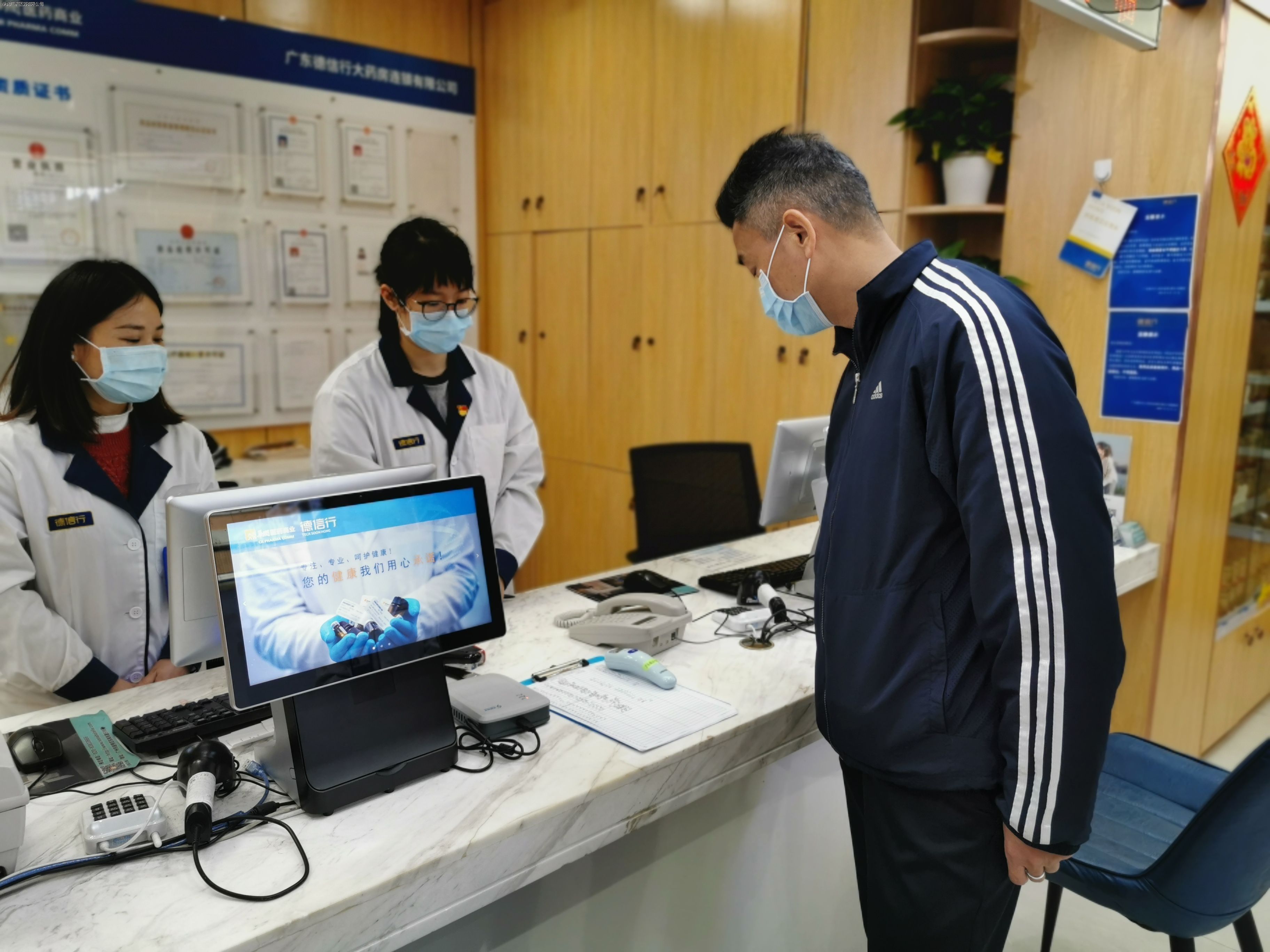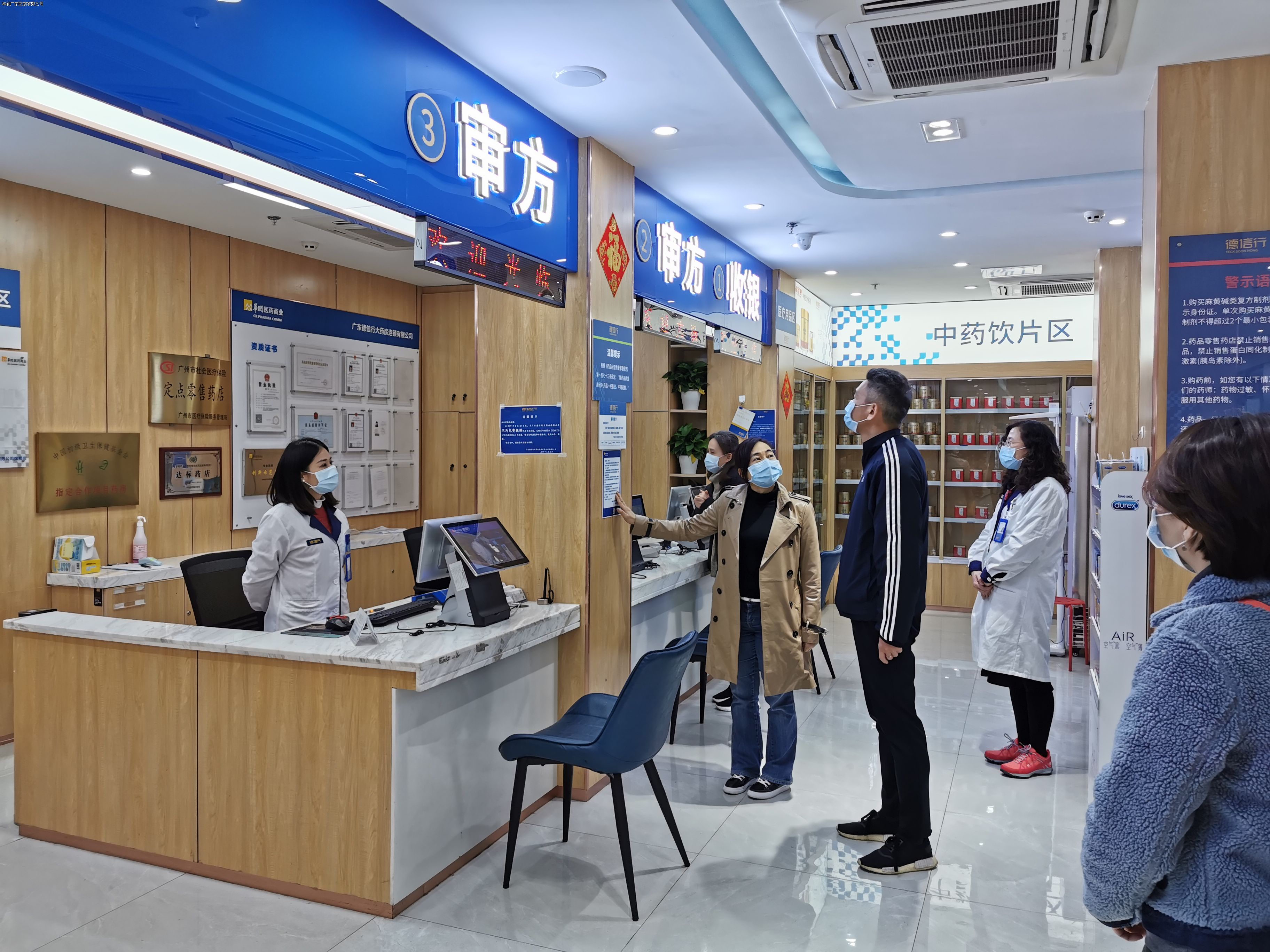 聽取匯報后,韓總來到德信行大藥房,了解德信行假期營業(yè)安排及員工防護和患者購藥需求等情況,對德信行大藥房員工在非常時期守護市民健康方面展現(xiàn)出的奉獻和擔(dān)當(dāng)精神表示充分肯定和鼓勵。