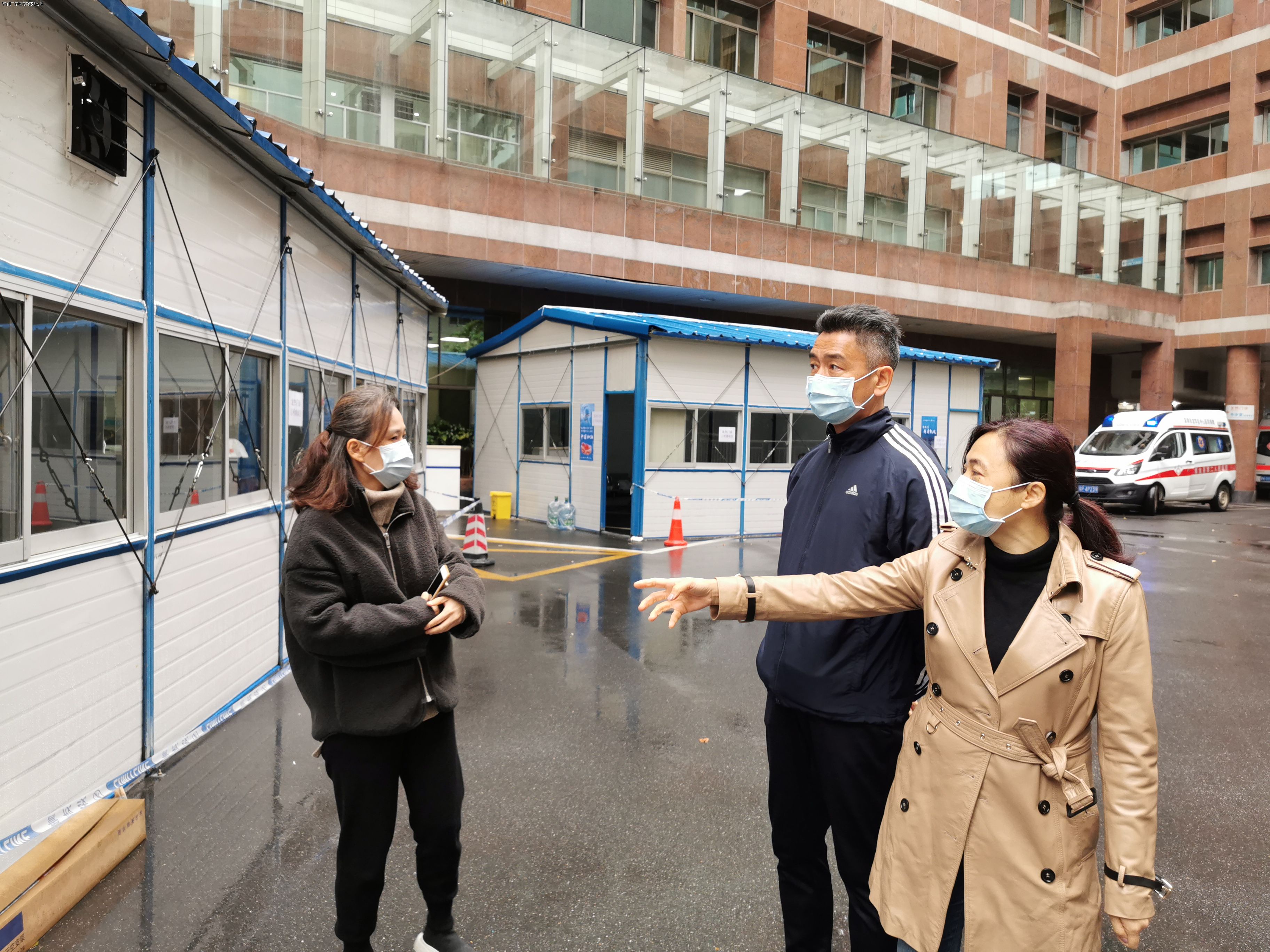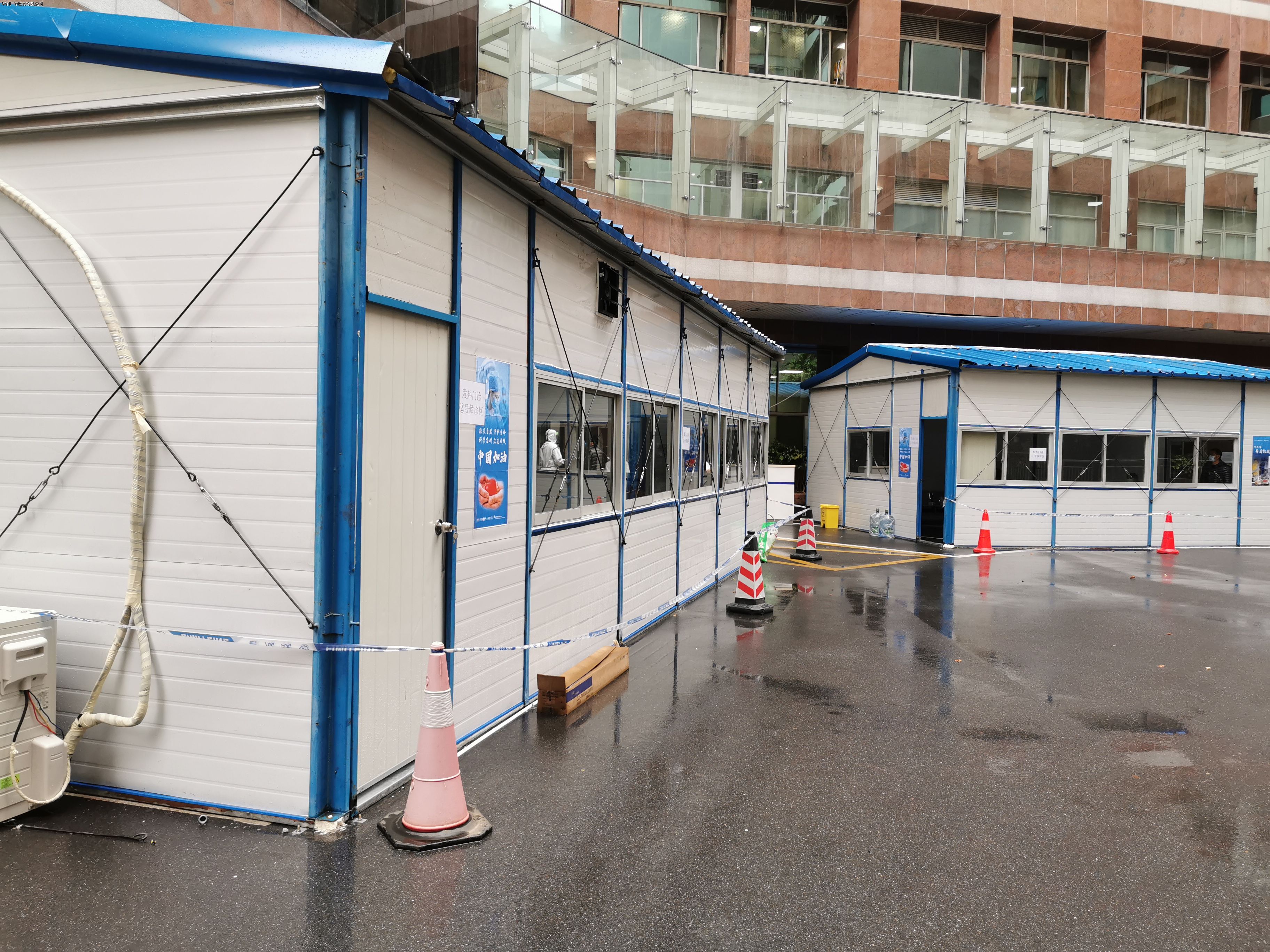隨后,韓總還視察了公司協(xié)助廣東省人民醫(yī)院搭建的發(fā)熱門診板房。廣東省人民醫(yī)院作為廣東省級新型冠狀病毒感染肺炎的定點救治醫(yī)院,所有醫(yī)務(wù)人員已投入緊張的病患救治中。為做好病毒感染的防控工作,降低就診患者的院感風(fēng)險,公司與醫(yī)院通力協(xié)作,在不到48小時內(nèi),搭建完成兩座100平米并配備空調(diào)和空氣消毒機的發(fā)熱門診板房。華潤廣東醫(yī)藥與醫(yī)院一起,并肩抗擊疫情。