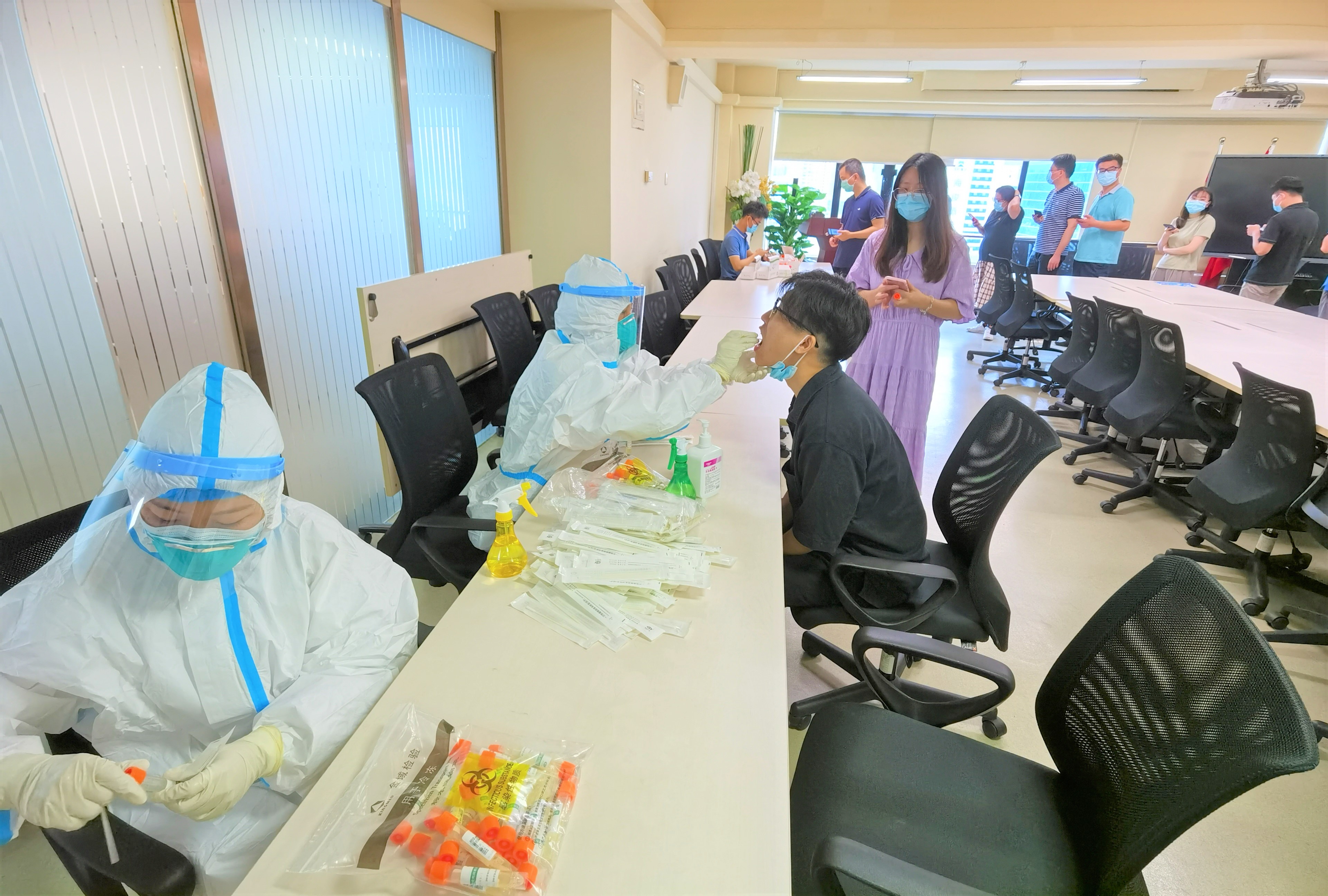 支援物資供給,保障應(yīng)檢盡檢。為有效阻斷疫情擴(kuò)散,越秀區(qū)連夜組織大規(guī)模核酸排查,醫(yī)護(hù)人員、街道辦事處、志愿者全力以赴。作為百年紅色央企華潤下屬企業(yè),為助力保障疫情嚴(yán)重區(qū)域物資供應(yīng),華潤廣東醫(yī)藥物流中心正夜以繼日保障物資出入庫和配送工作,專業(yè)化供應(yīng)鏈有條不紊,同事們主動請纓加入抗疫“戰(zhàn)線”,全力以赴支援物資配送與供應(yīng)。