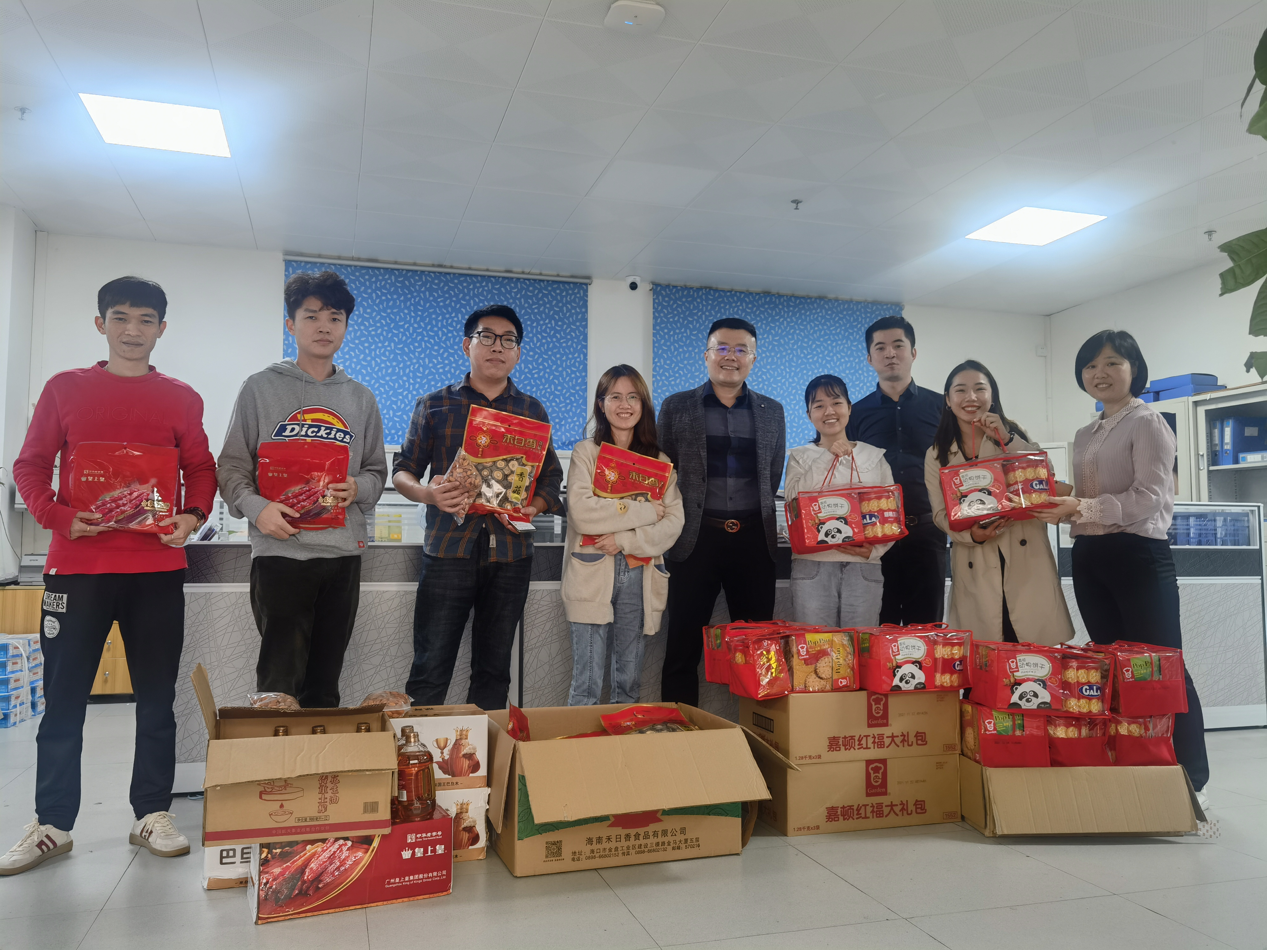 除常規(guī)的年貨禮包外,公司還特別照顧仍在正月初一堅(jiān)守一線的基層員工。2月1日,廣東德信行霍佩瓊總經(jīng)理、廣東德信行黨支部羅曉媚書記、廣東德信行工會(huì)梁琪主席走訪慰問在廣東德信行旗艦店堅(jiān)守一線的基層職工?;襞瀛偪偨?jīng)理向值班員工噓寒問暖,遞送精心籌備的干貨禮盒,并致以衷心祝福。