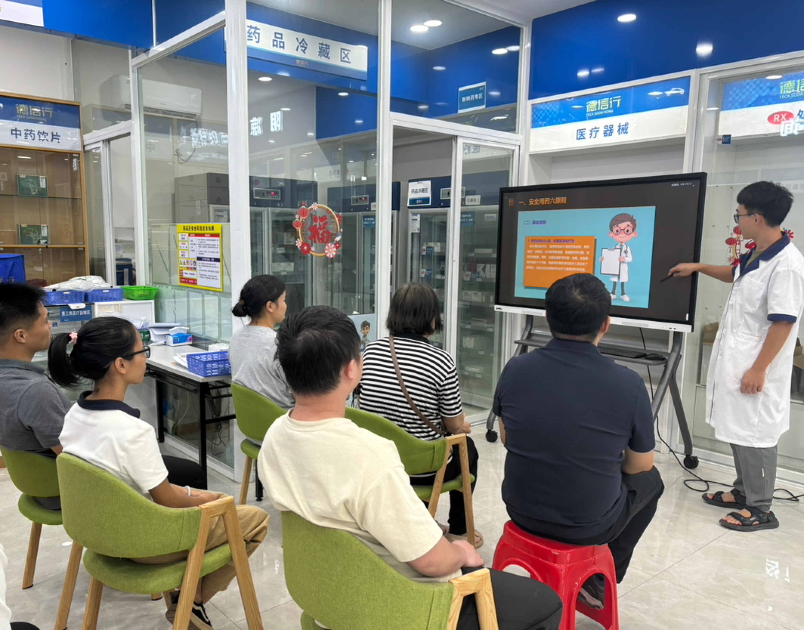 活動(dòng)現(xiàn)場,東莞人醫(yī)分店店長林劍勇以通俗易懂的語言搭配直觀清晰的圖文課件,圍繞居民日常用藥的核心需求展開講解,內(nèi)容聚焦安全用藥六原則、服藥“十要十忌”等基礎(chǔ)常識(shí),同時(shí)針對(duì)社區(qū)中高發(fā)的慢性病,重點(diǎn)解讀高血壓用藥注意事項(xiàng)、口服降糖藥物合理使用方法,還特別提醒了服藥時(shí)的禁忌用水(如避免用茶水、牛奶送服等),將專業(yè)醫(yī)藥知識(shí)轉(zhuǎn)化為居民聽得懂、用得上的實(shí)用內(nèi)容。
