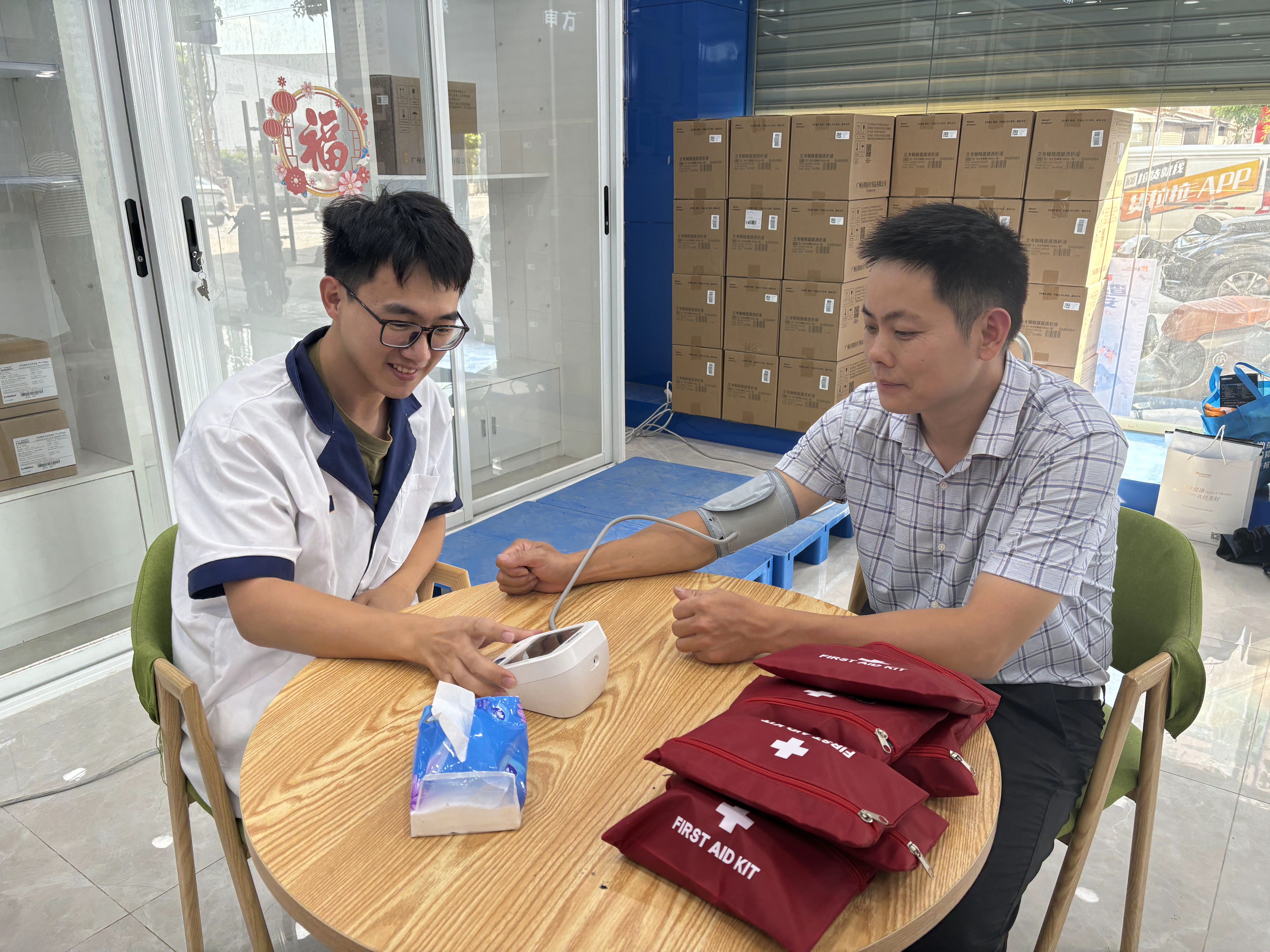 隨后,林劍勇店長還為現(xiàn)場居民逐一測量血壓,結(jié)合測量數(shù)據(jù)給出個(gè)性化健康建議。活動(dòng)尾聲,華潤東莞醫(yī)藥為社區(qū)居民送上暖心醫(yī)藥包與祝福。?